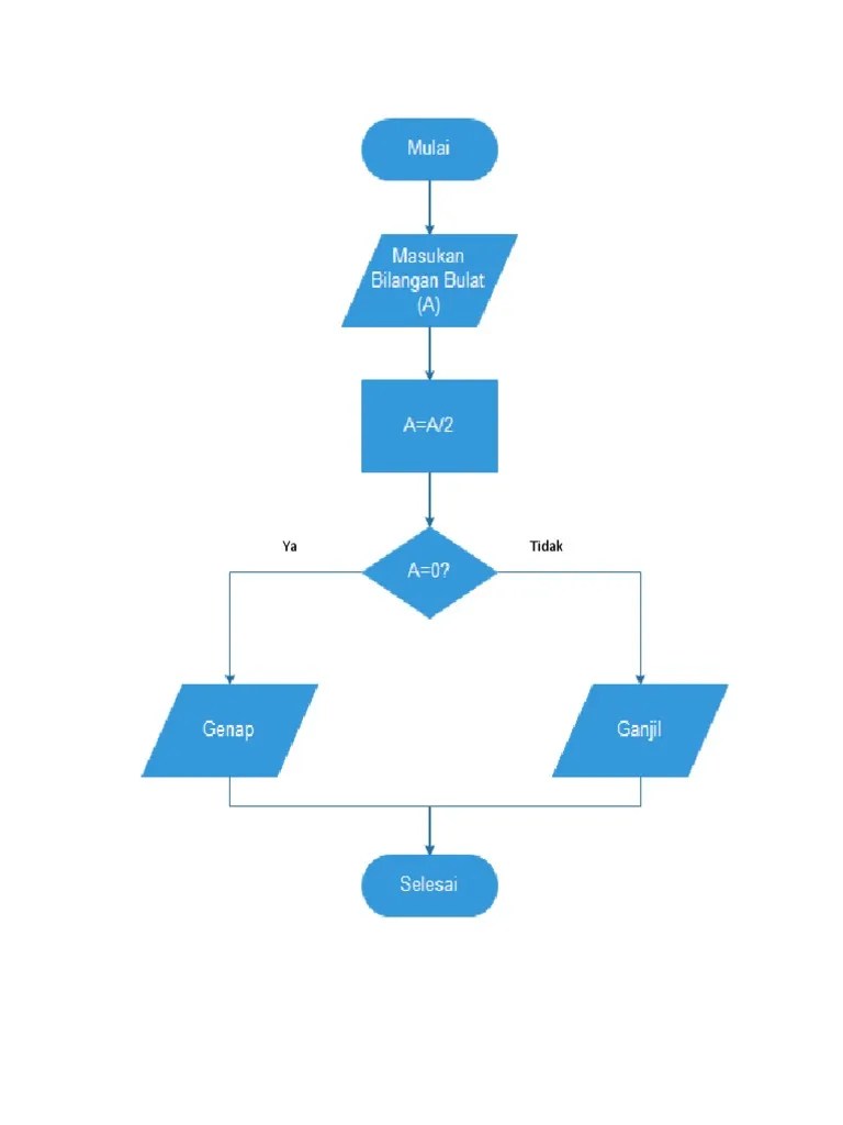 2 modulus 2 hasilnya adalah 0.apabila kondisi tersebut bernilai benar (true) maka akan menuju pada simbol output untuk …